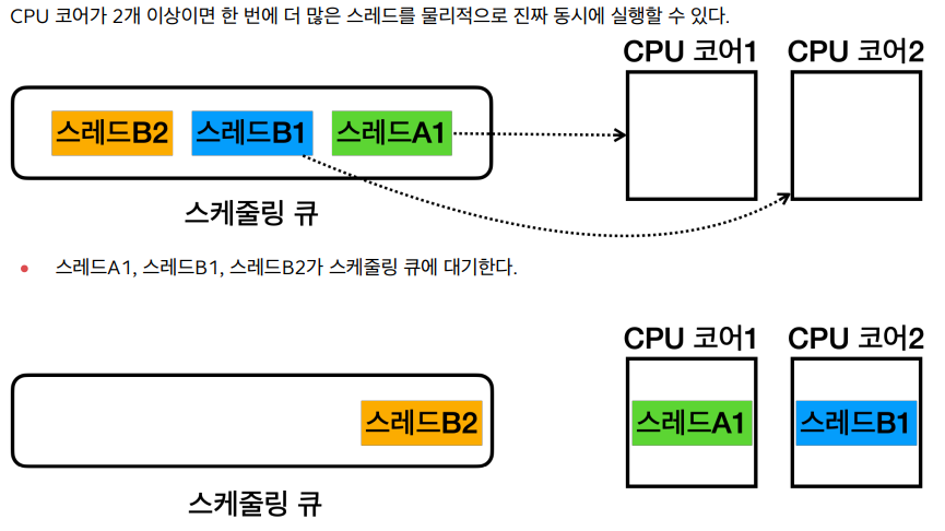- 컴퓨터 시스템에서 둘 이상 CPU 코어를 사용하여 여러 작업을 동시에 처리하는 기술