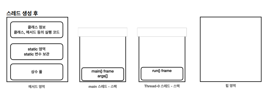 helloThread.start(); // 호출 시 스택영역에 할당되면서 실행된다. (Thread-0 스레드)