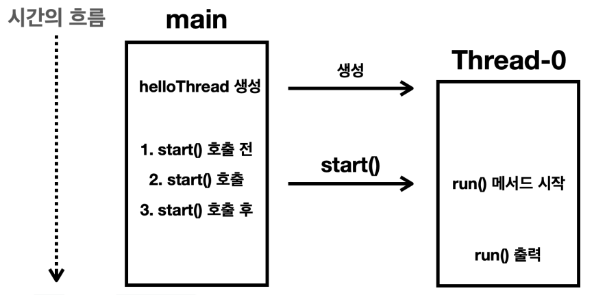 Thread-0 스레드가 run() 호출(main 스레드가 run() 호출 x)