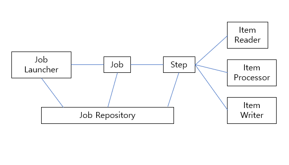 - Job: 읽기, 처리, 쓰기 과정을 정의한 배치 작업