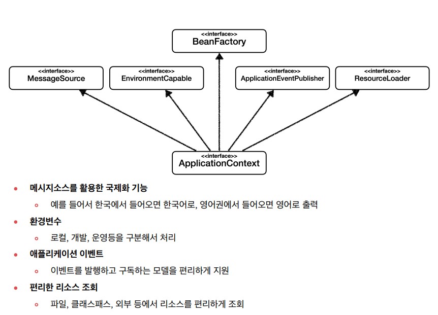 ApplicationContext : BeanFactory 기능 + 부가 기능